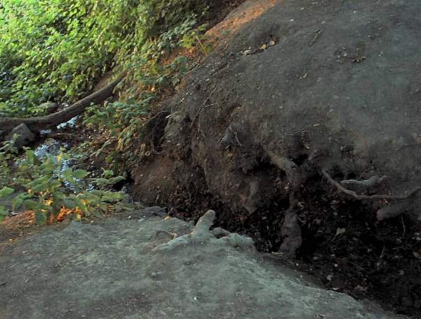 This is the outlet of the pond at Santa Teresa Springs. Erosion