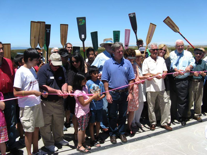 Ribbon-cutting at the boat docks Boating rules and maps near the boat docks. Launching kayaks County Supervisor Dave Cortese (in blue) in the dragonboat, with Acting County Parks Director Julie Mark behind him The dragonboat launches. Crowds at the boat docks Kayak on the Alviso Slough. From the boat launching ramp, it is about 4 miles to San Francisco Bay. Photographs by Ron Horii. Cameras: Olympus E-510 (11/27/10) and Canon A720IS (6 /5/10). HDR software: Photomatix Pro 3.2. Photo editing: Photoshop Elements 9. Page created by Ron Horii, 11/30/10, updated 12/12/11 |
