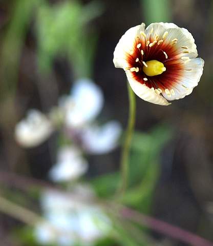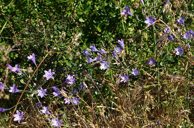 Looking back down the trail on top of the ridge. Many of the trees on the ridge are blue oaks. Elegant brodiaea Harvest brodiaea. Gooseberries Checkerbloom The