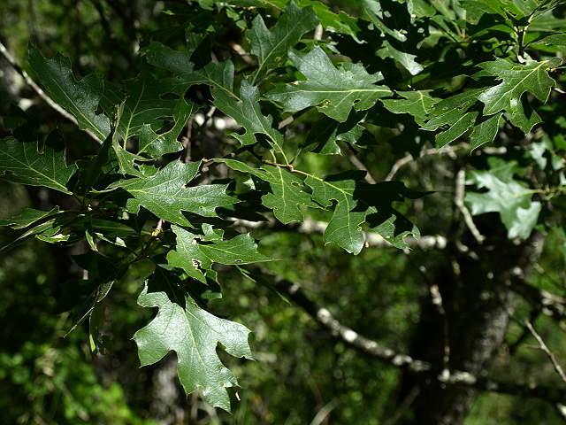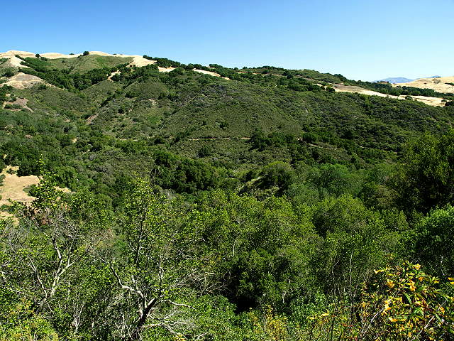 trail reaches the top of the ridge through a forest of blue oaks. It