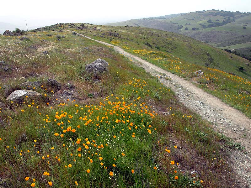Poppies and popcornflowers on the hill above the Hidden Springs Trail.