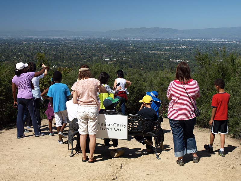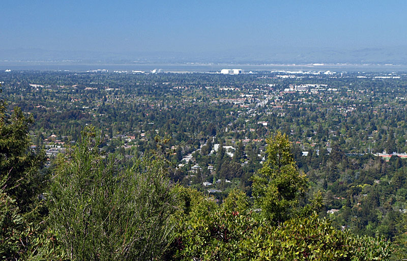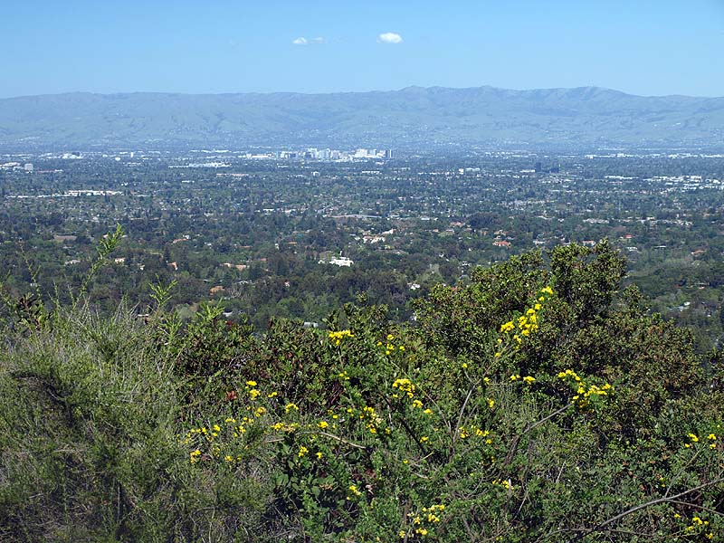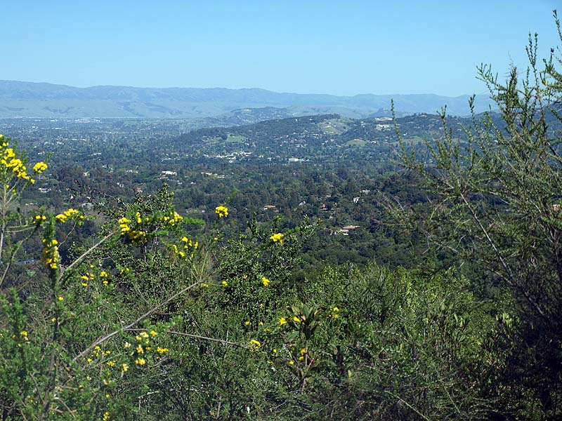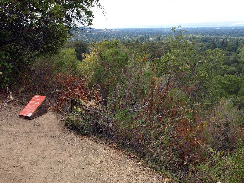 The Redwood Trail ascends through a shady redwood forest. Continuing the ascent on the Redwood Trail. Continuing the uphill climb on the Redwood Trail. The Redwood Trail is approaching the junction with the Lookout Trail. This is the Lookout Trail, heading up to its junction with the Lookout Point Trail. The trail makes a sharp switchback at the junction of the Lookout Trail (right) and the Lookout Point Trail (left). Ferns line this part of the Lookout Point Trail. Continuing on the Lookout Point Trail. Finally, the trail leads to Lookout Point, which is an open area, covered with chaparral. There is a bench here at Lookout Point. View looking towards Moffett Field and San Francisco Bay. View looking towards downtown San Jose. In this view, Mount Hamilton is on the upper left. The Evergreen Hills are below it. Santa Clara Valley Medical Center is in the middle. This view is looking towards the Los Capitancillos Ridge, with the Santa Teresa Hills, and the Mount Hamilton Range behind. Los Gatos and Saratoga are below. The Lookout Point Trail deadends at Lookout Point, so you have to backtrack down the trail. On the return trip, this is a view looking back down the Lookout Point Trail. This part of the Lookout Point Trail goes through a forest of young redwoods. The Lookout Point Trail passes by a hillside covered with ferns and vines. Looking down at the Lookout Trail. This is the junction of the Lookout Trail (left) and Redwood Trail (right). Most people backtracked along the Redwood Trail to the trailhead. I followed the Lookout Trail straight ahead, which is the Healthy Trails route. The Lookout Trail to the Redwood Trail ![]() The route I followed below is shown by the magenta X's above. Continuing northwest on the Lookout Trail. The vegetation along the trail opens up in places, with views of Saratoga. More shady forest along the Lookout Trail. Ahead are 2 bridges over a creek. The upper bridge is on the Lookout Trail near the start of the Orchard Trails. Below is a bridge along the lower Lookout Trail. The lower bridge on the Lookout Trail. Some of the pictures below were taken on 8/11/12: The Lookout Trail makes a sharp switchback as it joins the Orchard Trail. Note that the Healthy Trails booklet and and new park map refers to both as the Lookout Trail, but the old park map refers to the trail on the left as the start of the Creek Trail. This picture was taken from the start of the North Orchard Trail, which will be covered later. Bridge on the Lookout Trail. Looking back at the bridge, this part of the Lookout Trail runs along the steep canyon of Wildcat Creek. This is next to the trail above the creek. It is actually a work of art. It is called "Nest" by artist Steven Siegel, made in 2005. It consists of stacked newspapers in a circle of bay laurel trees. The trail runs by an old concrete building that appears to be part of the water system. At a covered reservoir, the trail reaches the junction of the Creek Trail and an an access trail (left) leading to parking lot P2. The Redwood Trail begins on the right. The Redwood Trail to the Nature Trail These pictures below were taken on 9/5/11 and 8/04/12 during hikes along the Nature and Redwood Trails. ![]() The violet X's show the route followed below. The Lookout Trail crosses the Redwood Trail. The Healthy Trails route follows the Redwood Trail. This is a view looking back from the end of the Redwood Trail to its junction with the Lookout Trail. (9/5/11) The Redwood Trail reaches the end of Poet's Walk. This sculpture and stone bench is at the top of Poet's Walk, which leads down to the Villa. (9/5/11) The amphitheater can be seen below the trail through the trees. (8/4/12) The Redwood Trail reaches the junction of the short Carriage House Trail (left). (8/4/12) Take the Carriage House Trail downhill (right) to this junction with the Nature Trail (left) and follow the Nature Trail ahead. (8/4/12) Looking back on the Nature Trail at this bend in the trail. There is a stand of redwoods above the trail here. (9/5/11) The trail rounds a bend above the Carriage House and enters a forest of bay laurels. (9/5/11) The trail goes uphill through this bay laurel forest. (9/5/11) Ahead, the Nature Trail joins the Lookout Trail. Take the Lookout Trail back to Parking Lot P3. (9/5/11) The Lookout Trail to Lookout Point The pictures below were taken on 8/5/12. They cover the start of the Healthy Trails route not taken in the previous hikes. It follows the Lookout Trail to Lookout Point and back. ![]() The blue X's show the route shown below to Lookout Point. This is the start of the Lookout Trail at the end of Parking Lot P4. This is the start of the Healthy Trails route. The trail climbs gently uphill. The trail loops back. After 0.1 miles, the trail reaches