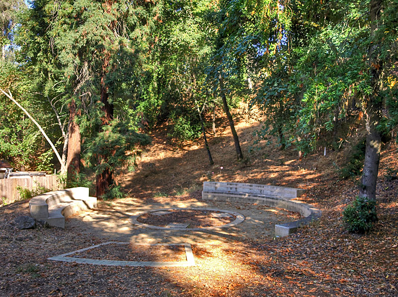 ![]() The route followed below is shown on the map above in the light magenta X's. ![]() This is near the top of the Redwood Trail. It descends the hillside in a series of switchbacks. On the other side of the creek is the Creek Trail, seen above. ![]() This is a view from lower down on the Redwood Trail, looking up Wildcat Creek, with the Creek Trail on the right. ![]() View of the Creek Trail from the Redwood Trail. ![]() Another view of the Creek Trail from a little farther along the Redwood Trail. ![]() This old stone BBQ pit is on the Creek Trail, near its junction with the Redwood Trail on the left. ![]() Redwood trees along the Creek Trail. ![]() There's a steep rock face on the other side of Wildcat Creek. The Creek Trail no longer ends at the park road. It leads to the artists' residences, which are private property, and access is restricted. Instead, take the Access Trail, which leads uphill to Parking Lot P2. ![]() Starting from the main park road, this paved walkway leads along the creek, on the other side of the creek from the artists' residences. It switches back and climbs up the hill, ending up at parking lot P2. It is indicated by the green X on the map above. ![]() This circle is part of the Creekside Studio. It is in the "Grove of Generosity," which honors the donors to the Montalvo Arts Center. It is indicated by the Blue X on the map above. These are all the hiking trails in Villa Montalvo. To see the paths and walkways associated with the villa and formal gardens, see the Villa and Gardens page. Page created by Ron Horii, 8/17/12, updated 11/2/14 |