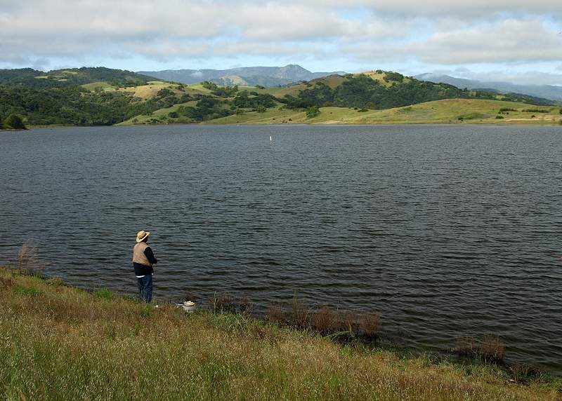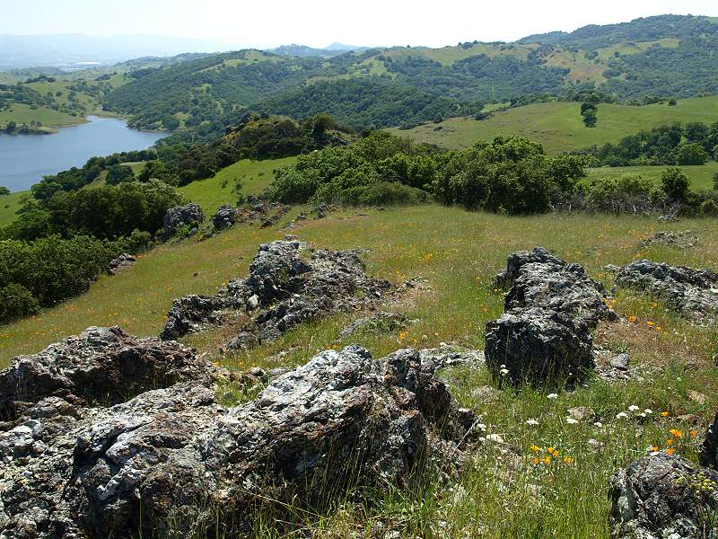 Almaden Reservoir above it, and Mt Loma Prieta in the background on the
