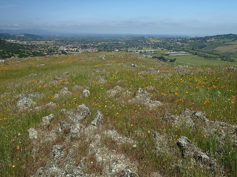 San Vicente, looking west from the peak, with New Almaden in the