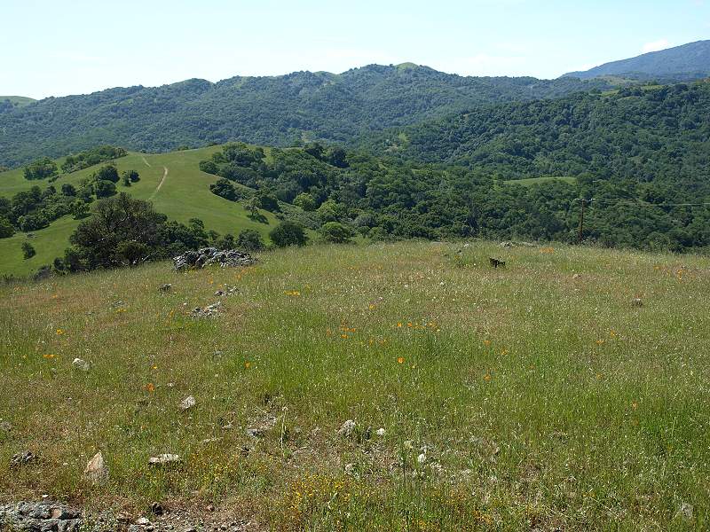 ![]() This is a view from Calero Dam in Calero County Park, looking southwest towards Rancho San Vicente, whose peak is on the upper right. The property line for the ranch is just above the Cherry Cove Trail in Calero. ![]() This