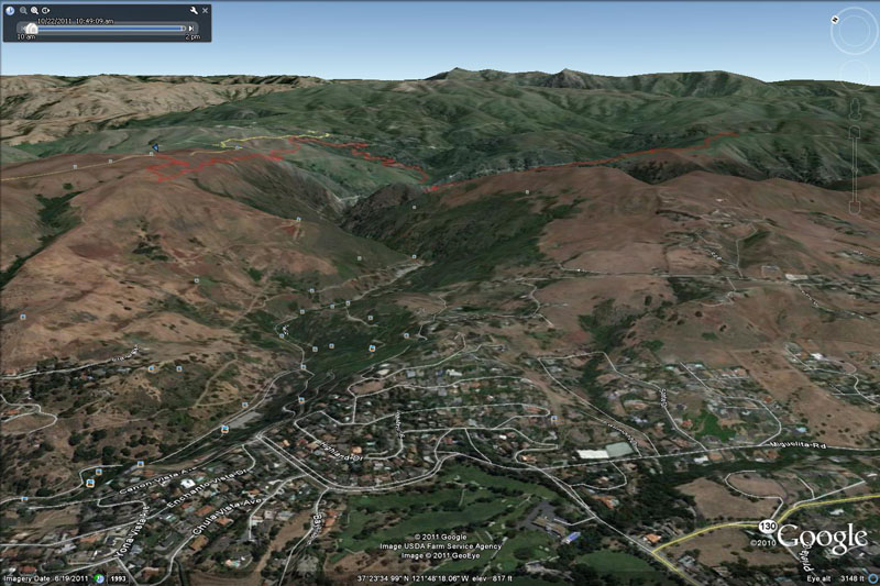3D images below are from Google Earth. A GPS track, taken by Sam Drake,