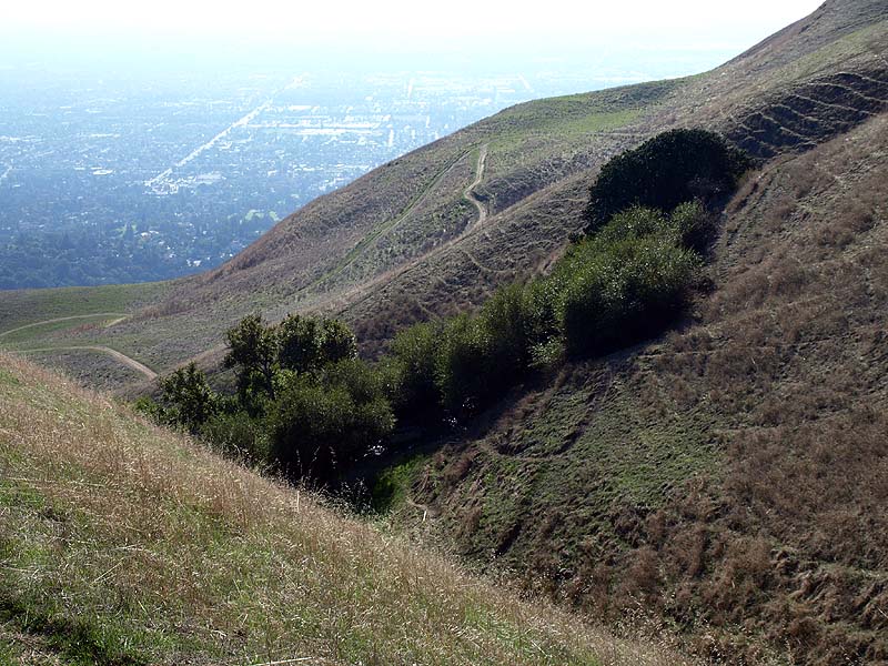 end of the Calaveras Fault Trail, looking at the trail making a steady